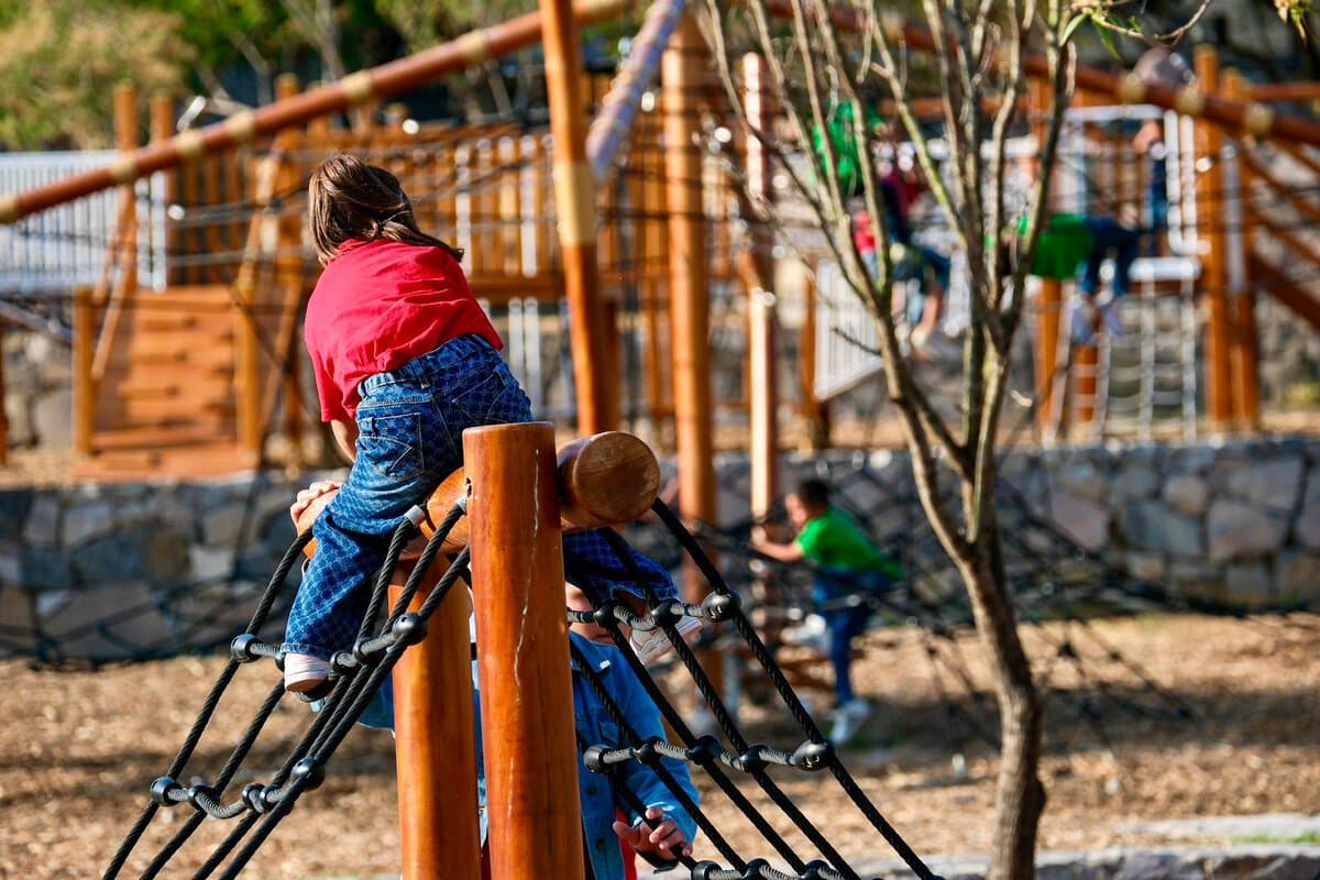 La intervención incluyó juegos infantiles con estructuras de equilibrio, puentes colgantes y columpios. También se realizaron trabajos en andadores, caballerizas y un vivero dentro del área intervenida.